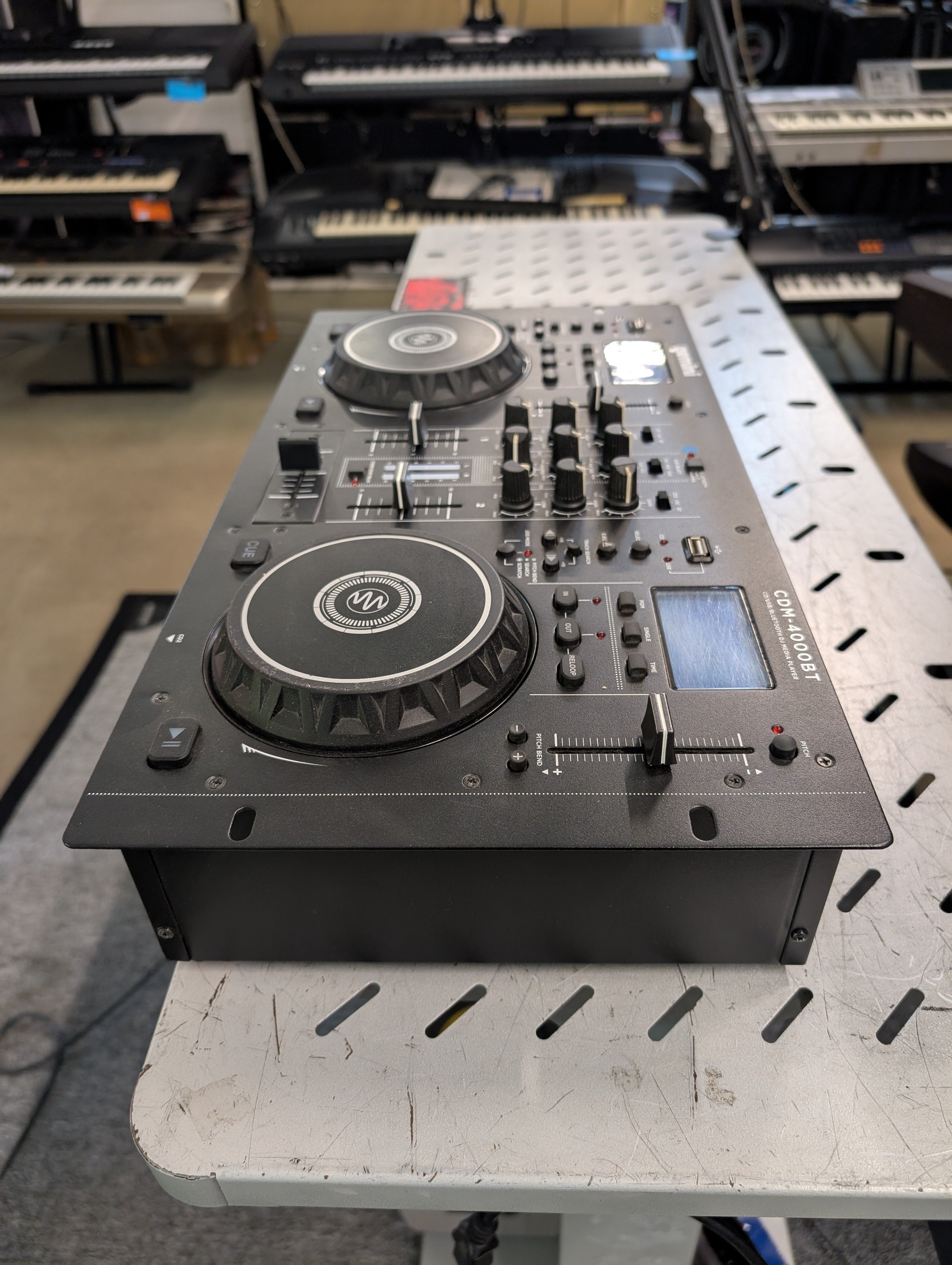 La console multimediale Bluetooth CDM-4000 per USB/CD è uno strumento potente ed abbordabile che offre funzionalità di ricerca e riproduzione dei brani di facile utilizzo su due deck CD. Combinando un pratico funzionamento con il controllo di una sezione mixer centrale, il CDM-4000 BT offre una soluzione versatile e all-in-one per impianti DJ portatili, nonché in installazioni per bar e club. Unendo potenti funzionalità e convenienza, il CDM-4000 BT offre una soluzione versatile e all-in-one per impianti DJ mobili, club e installazioni da bar.