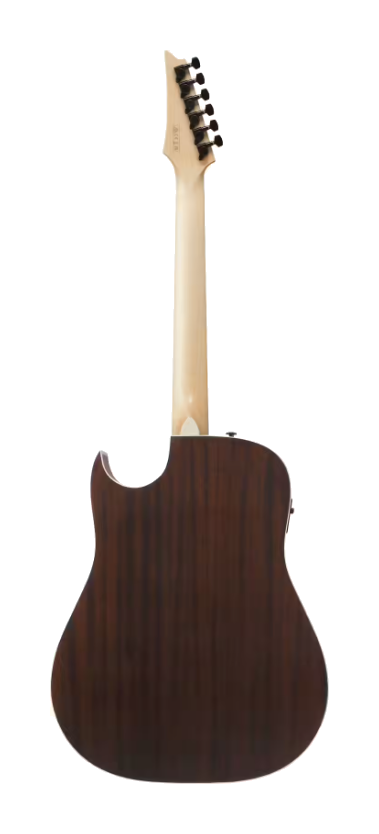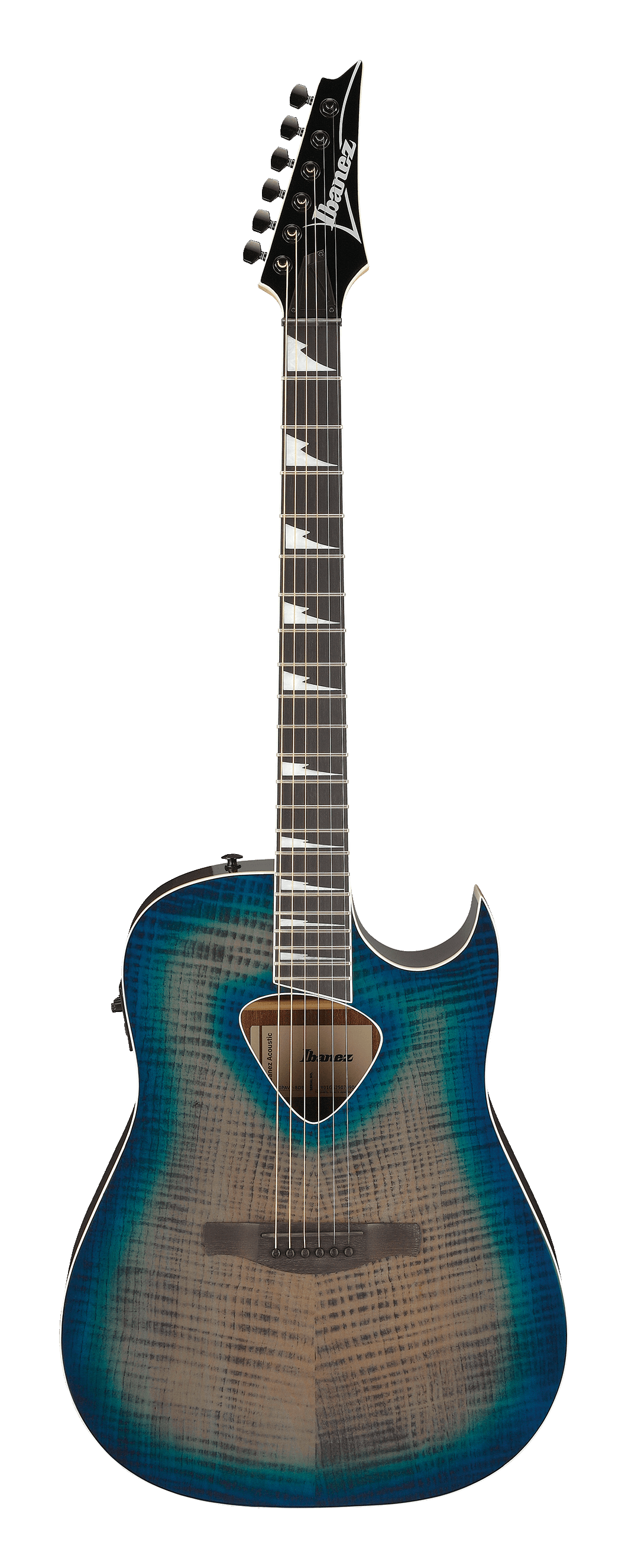 Ibanez ALT50FA-BDB Blue Doom Burst è una chitarra elettroacustica con corpo Altstar, top in acero fiammato art grain (basswood) e fondo e fasce in sapele, pensata per un suono bilanciato con proiezione definita e carattere distintivo. Il manico Comfort Grip in acero con tastiera in purpleheart offre suonabilità fluida e risposta pronta, mentre il ponte in purpleheart assicura trasmissione diretta delle vibrazioni. Il sistema di amplificazione include il pickup Ibanez Undersaddle abbinato al preamp Ibanez AEQ-2T con accordatore onboard e uscita jack da 1/4", alimentato da batteria 9V. Dettagli come gli intarsi sharktooth e le meccaniche die-cast nere 18:1 valorizzano la finitura Blue Doom Burst.